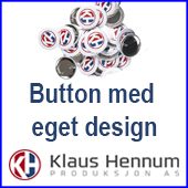 55 mm button med standard nål bak for feste i tøy m.m. Kan også leveres i alle andre størrelser eller med andre fester (magnet for feste i tøy). Ønsker du din logo på? Ta kontakt for mer informasjon