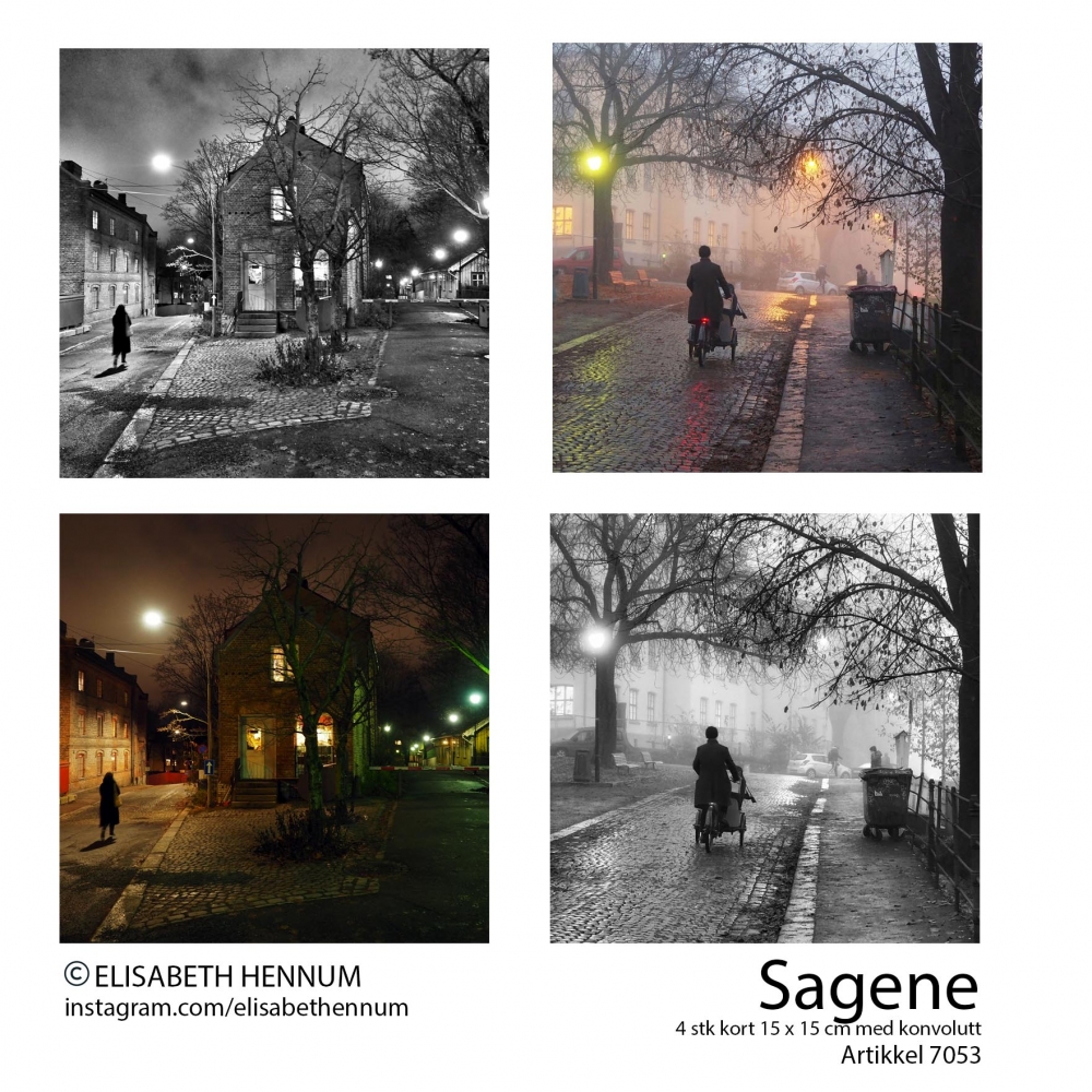 4 doble postkort (15 x 15 cm) m/konvolutt - Sagene