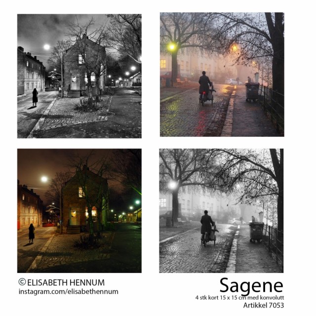 I denne pakken er det fire doble postkort med konvolutt. De er alle fotografert av Elisabeth Hennum og produsert av Klaus Hennum Produksjon AS på Grünerløkka i Oslo. Du finner mange flere bilder fra Elisabeth på instagram.com/elisabethennum
